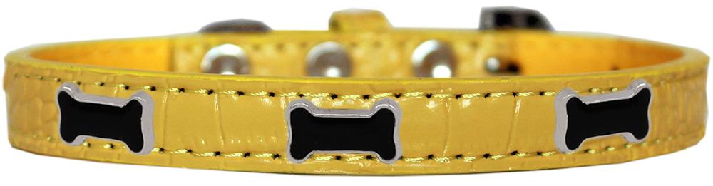 Black Bone Widget Croc Dog Collar Yellow Size 12