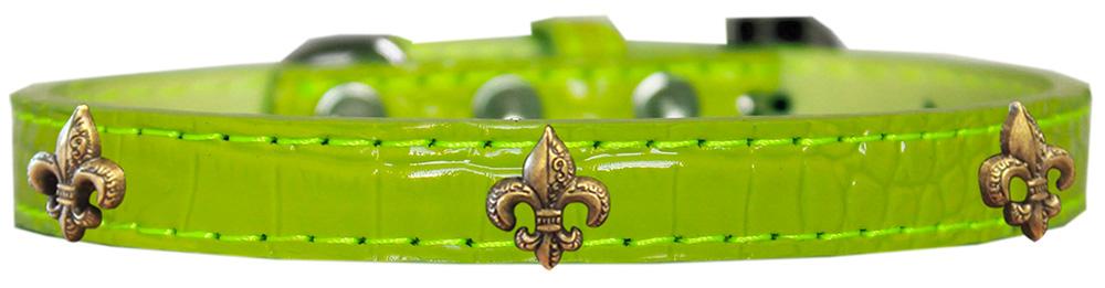 Bronze Fleur De Lis Widget Croc Dog Collar Lime Green Size 20