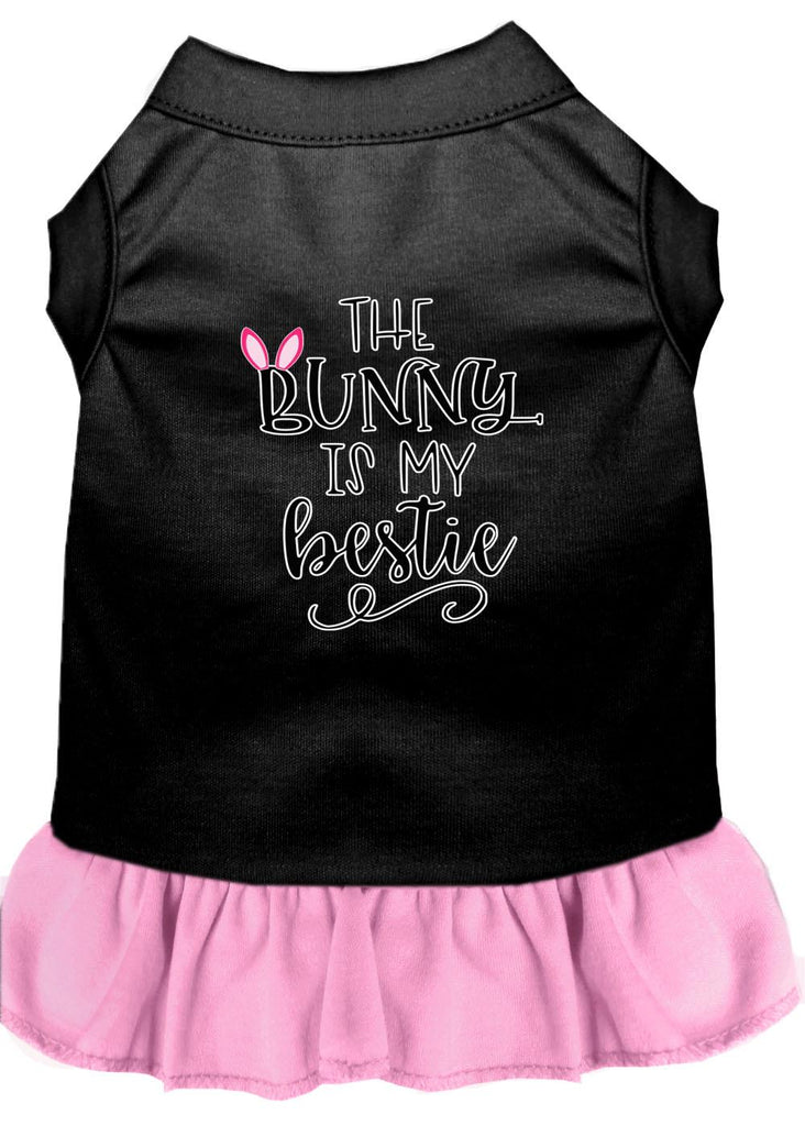 Bunny Is My Bestie Screen Print Dog Dress Black With Light Pink Xl (16)