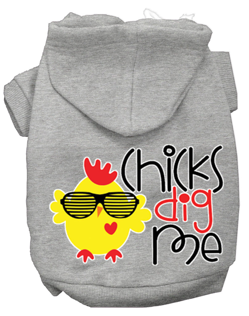 Chicks Dig Me Screen Print Dog Hoodie Grey M
