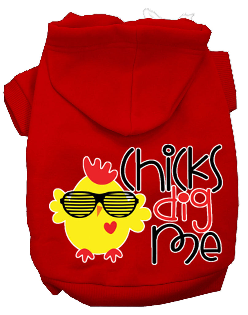 Chicks Dig Me Screen Print Dog Hoodie Red Xl