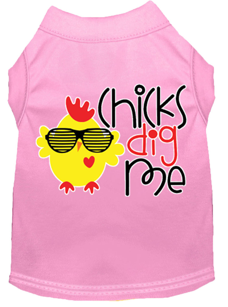 Chicks Dig Me Screen Print Dog Shirt Light Pink Xs
