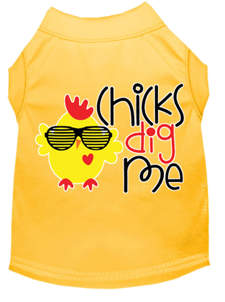 Chicks Dig Me Screen Print Dog Shirt Yellow Xxxl