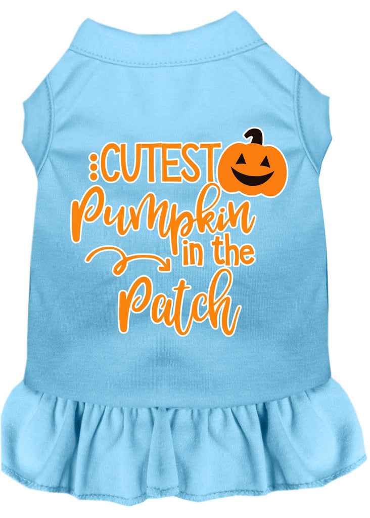 Cutest Pumpkin In The Patch Screen Print Dog Dress Baby Blue 4x