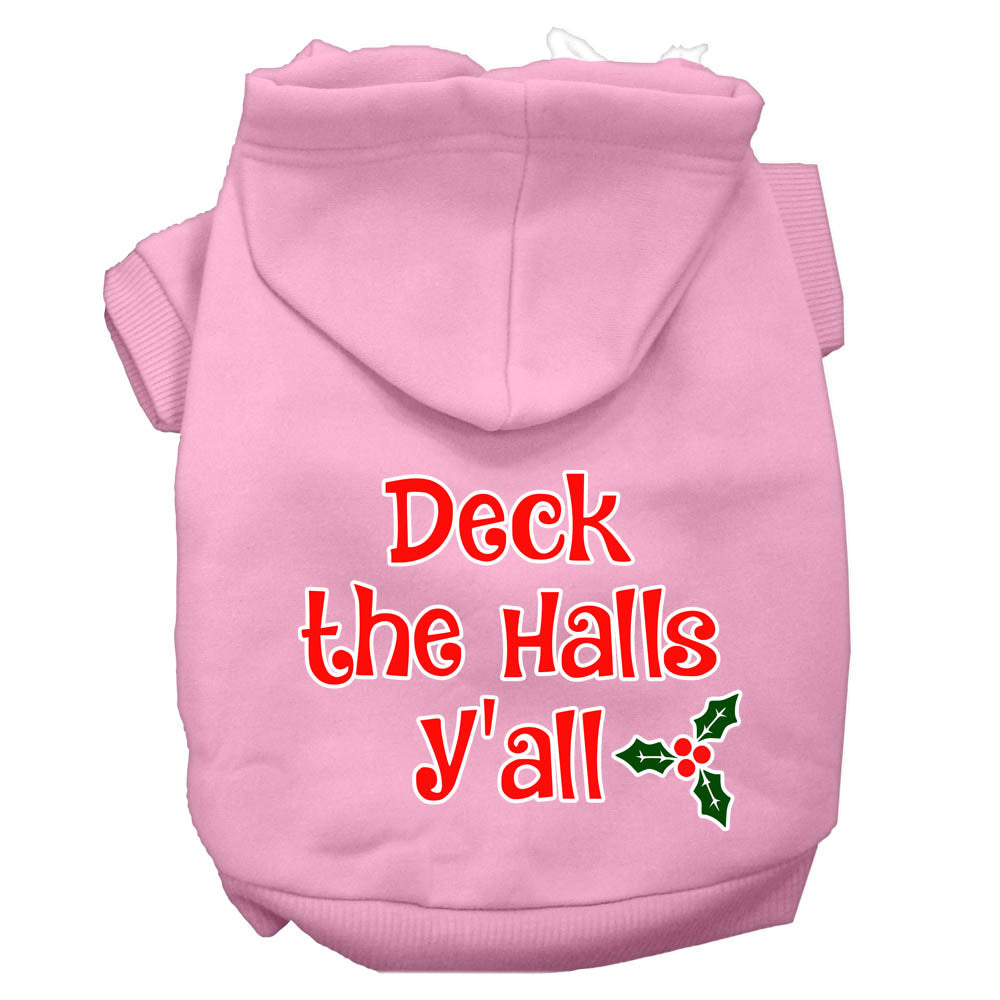 Deck The Halls Y'all Screen Print Dog Hoodie Light Pink S