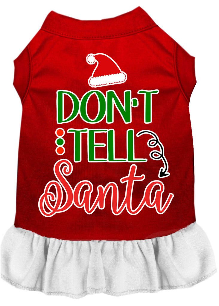 Don't Tell Santa Screen Print Dog Dress Red With White Sm
