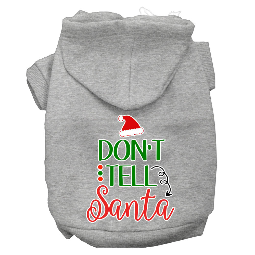 Don't Tell Santa Screen Print Dog Hoodie Grey Xl
