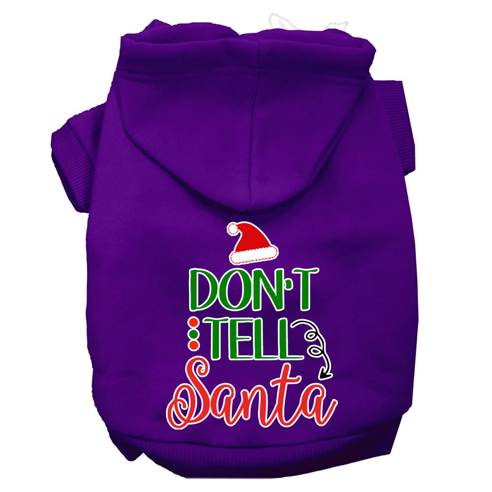 Don't Tell Santa Screen Print Dog Hoodie Purple M
