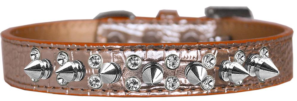 Double Crystal And Spike Croc Dog Collar Copper Size 18