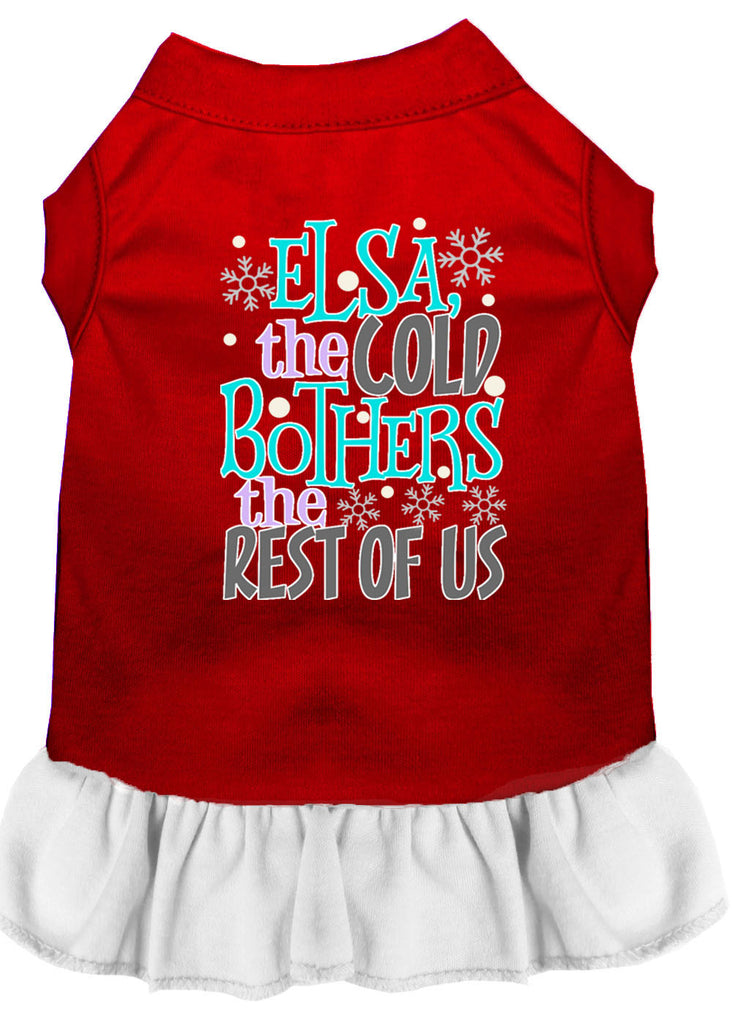 Elsa, The Cold Screen Print Dog Dress Red With White Xs