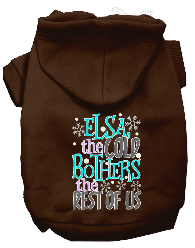 Elsa, The Cold Screen Print Dog Hoodie Brown S