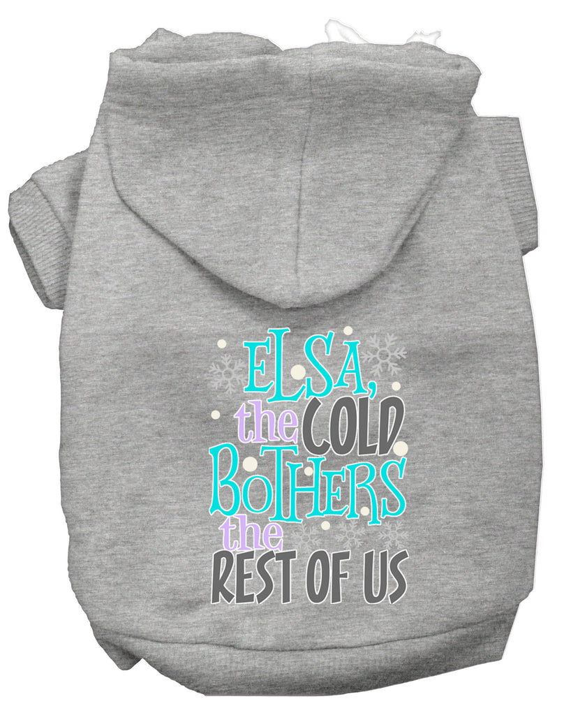 Elsa, The Cold Screen Print Dog Hoodie Grey Xs