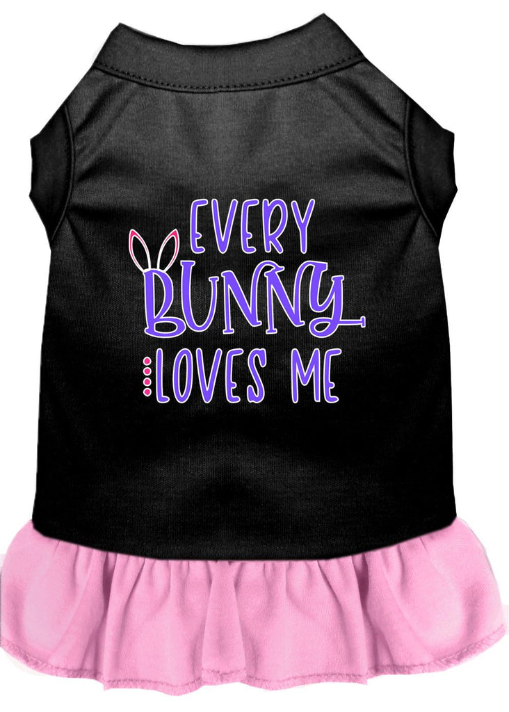 Every Bunny Loves Me Screen Print Dog Dress Black With Light Pink Lg (14)