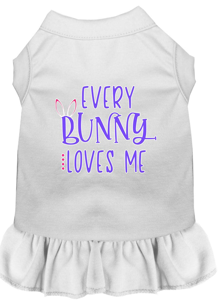 Every Bunny Loves Me Screen Print Dog Dress White Med (12)