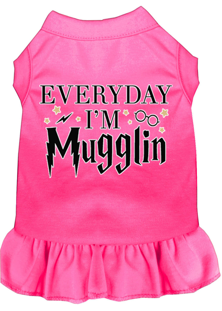 Everyday I'm Mugglin Screen Print Dog Dress Bright Pink 4x (22)