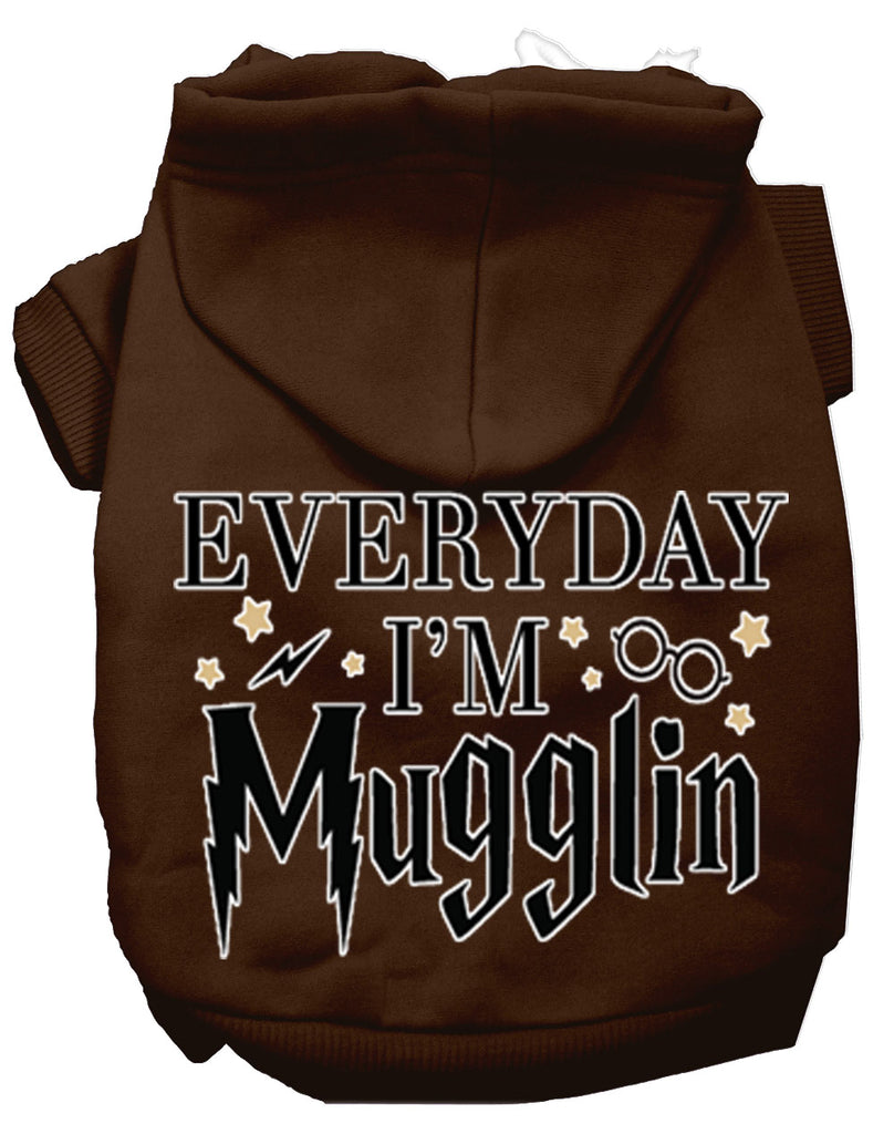 Everyday I'm Mugglin Screen Print Dog Hoodie Brown Xs