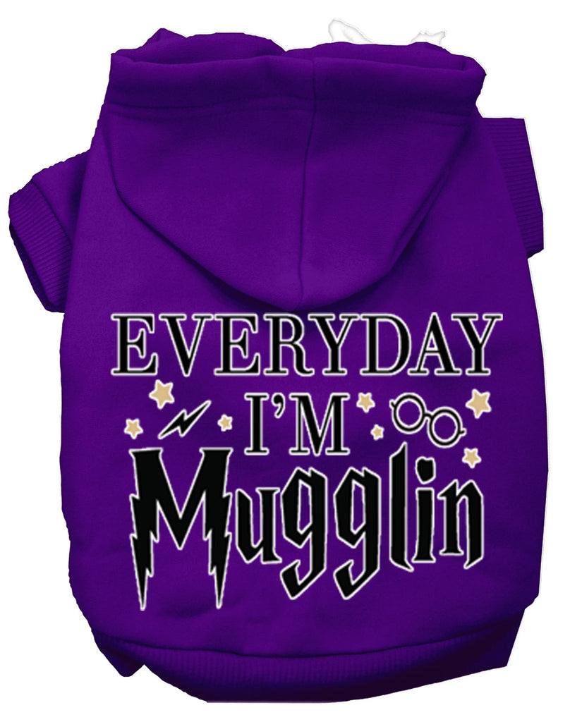 Everyday I'm Mugglin Screen Print Dog Hoodie Purple L