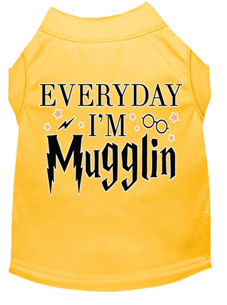 Everyday I'm Mugglin Screen Print Dog Shirt Yellow Xxl