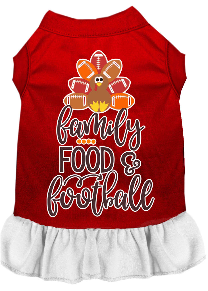 Family, Food, And Football Screen Print Dog Dress Red With White Lg