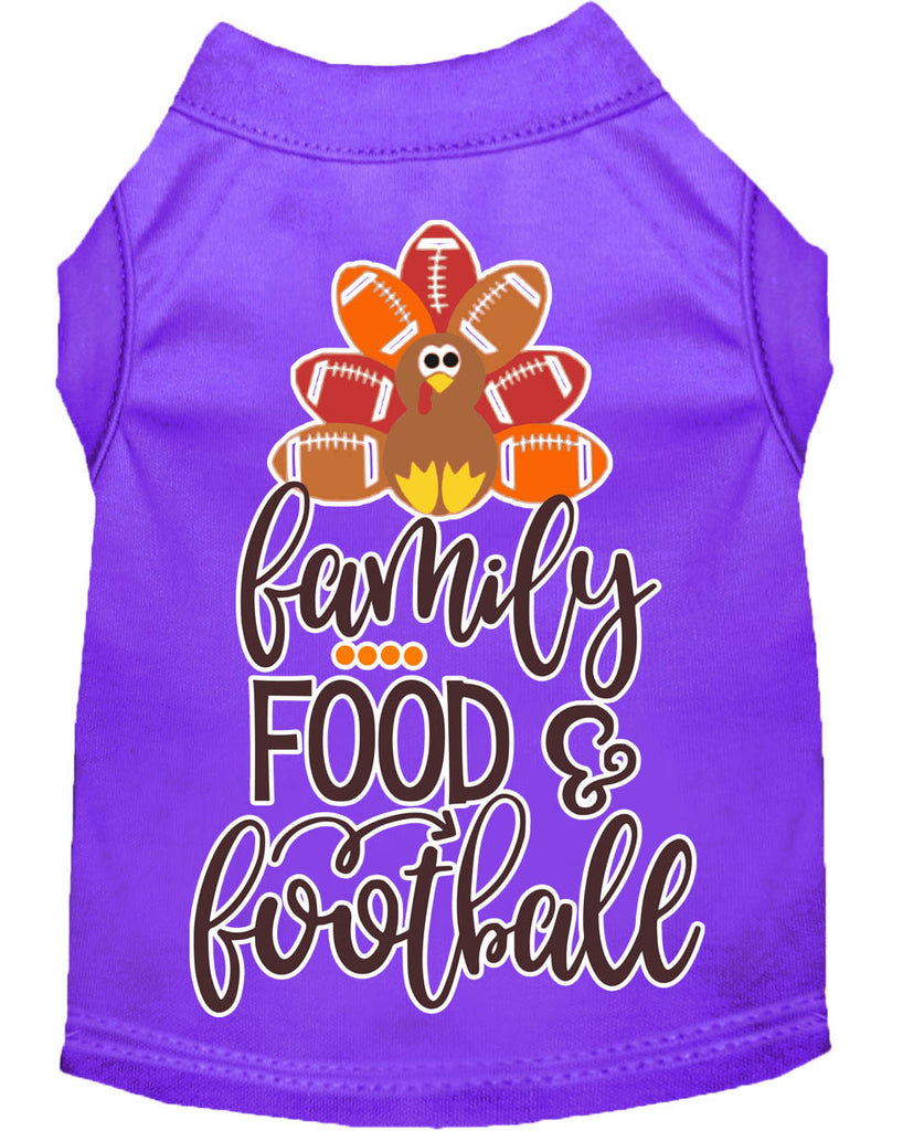 Family, Food, And Football Screen Print Dog Shirt Purple Xxxl