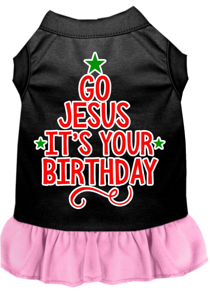 Go Jesus Screen Print Dog Dress Black With Light Pink Xs (8)