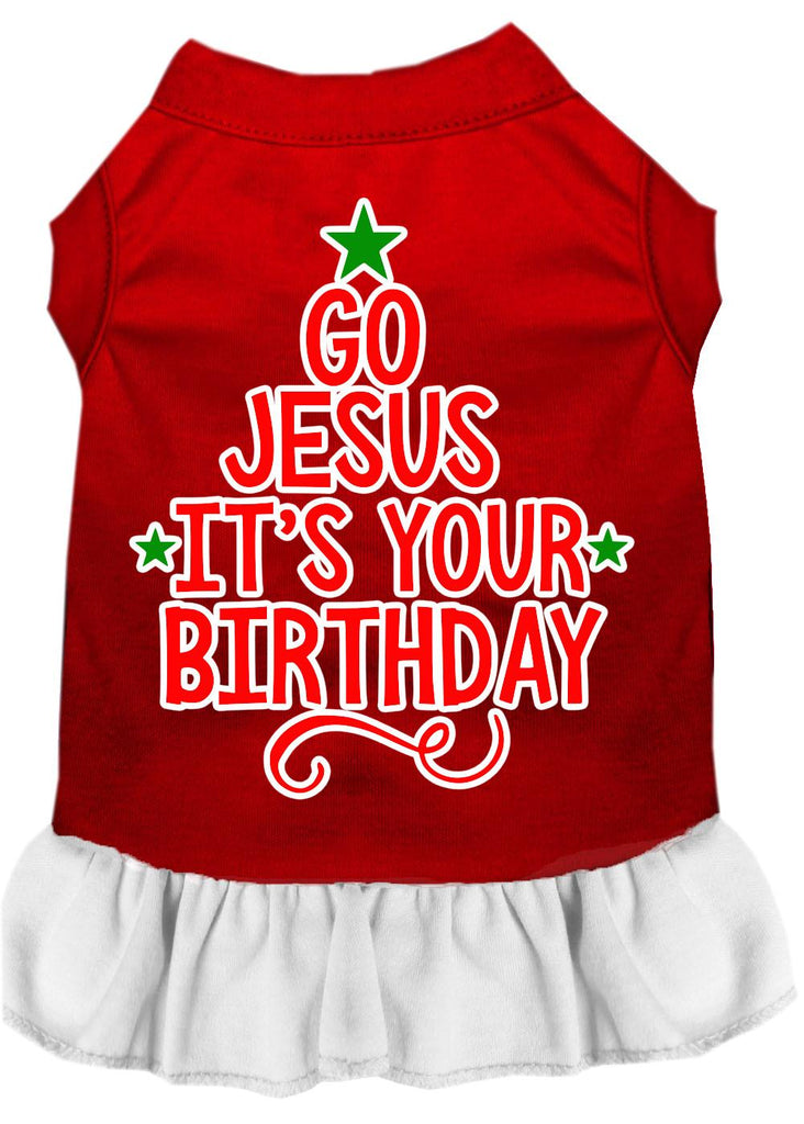 Product Summary : New/More New Christmas!/Go Jesus Screen Print Dog Dress@Events & Holidays/Christmas/Holiday Dresses/Go Jesus Screen Print Dog Dress