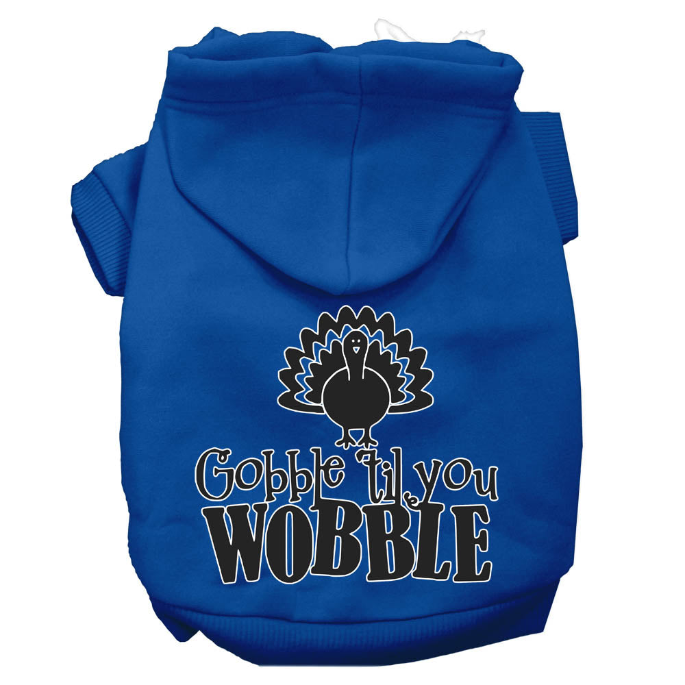 Gobble Til You Wobble Screen Print Dog Hoodie Blue Xl