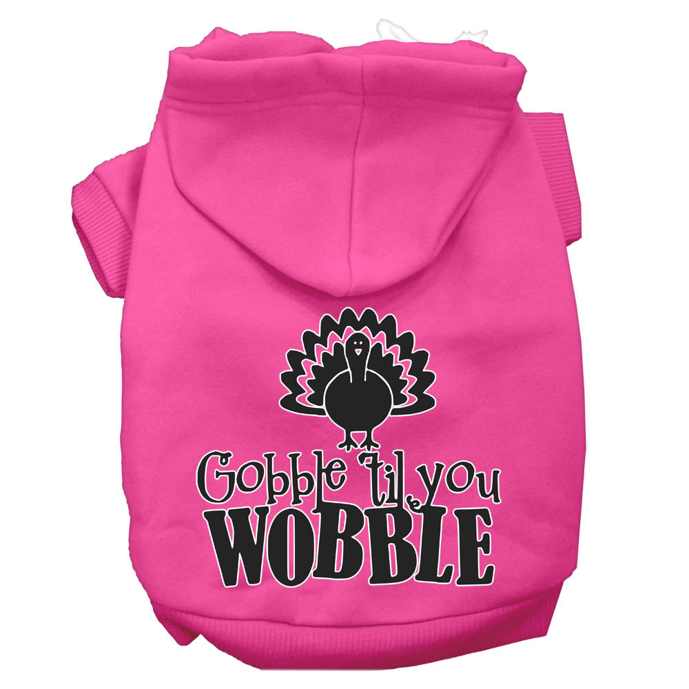 Gobble Til You Wobble Screen Print Dog Hoodie Bright Pink L