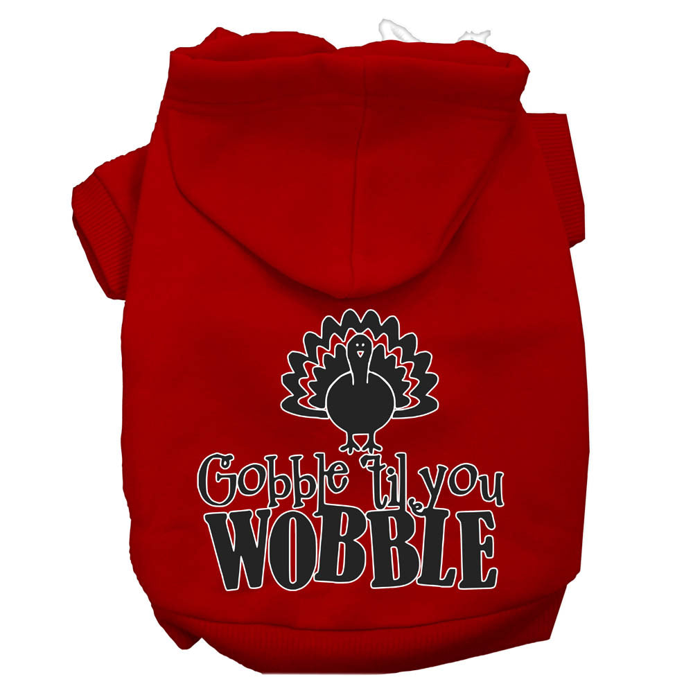 Gobble Til You Wobble Screen Print Dog Hoodie Red Xl