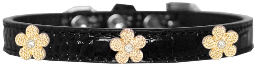 Gold Flower Widget Croc Dog Collar Black Size 12