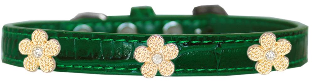Gold Flower Widget Croc Dog Collar Emerald Green Size 10