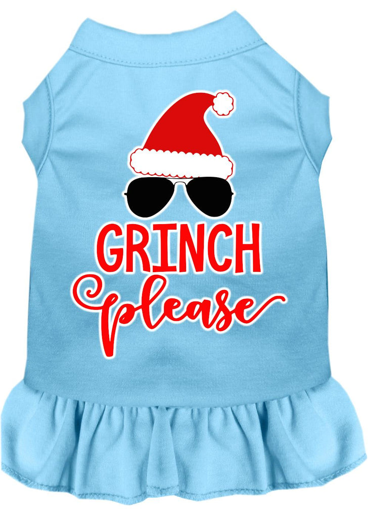 Grinch Please Screen Print Dog Dress Baby Blue 4x (22)