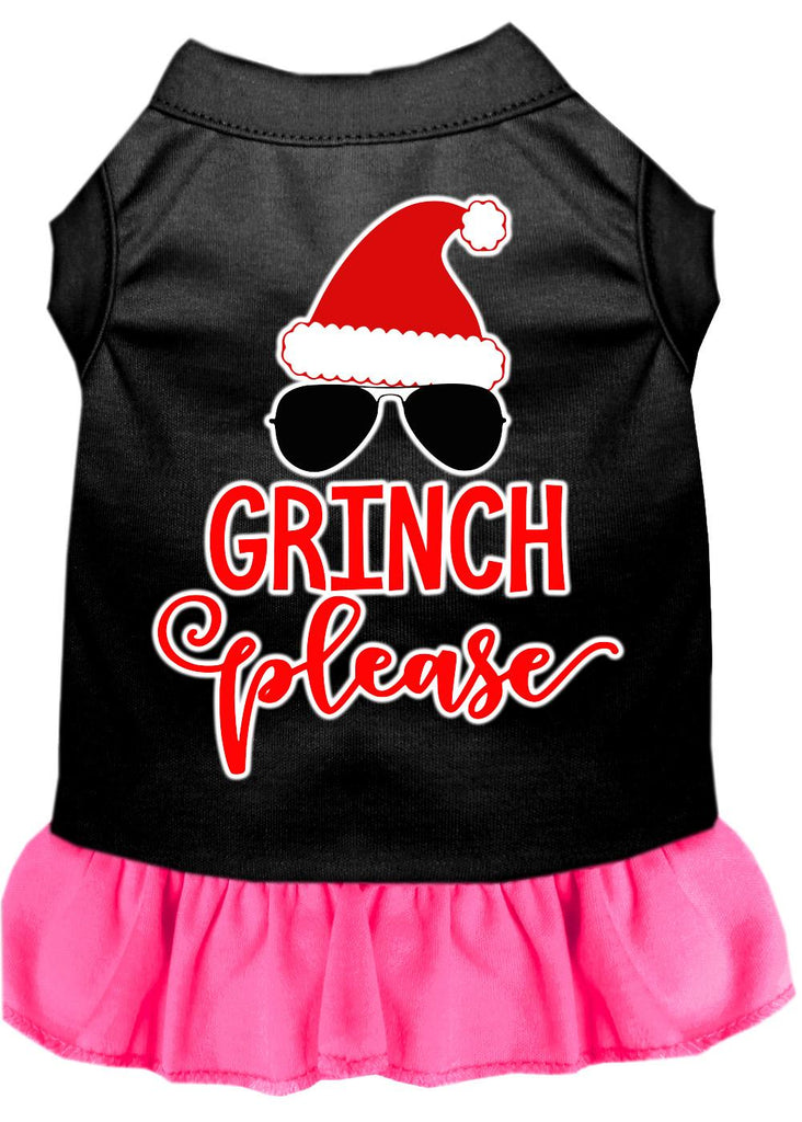 Grinch Please Screen Print Dog Dress Black With Bright Pink Med (12)