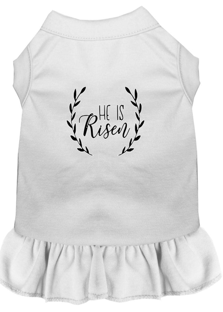 He Is Risen Screen Print Dog Dress White 4x (22)