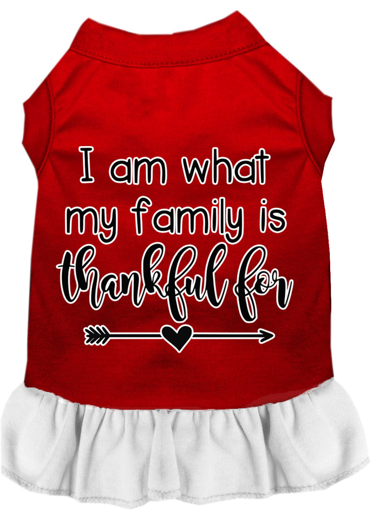 I Am What My Family Is Thankful For Screen Print Dog Dress Red With White Xxl