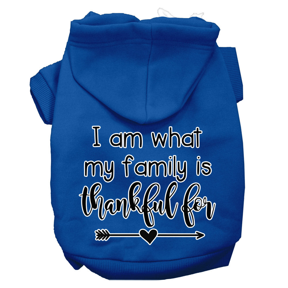 I Am What My Family Is Thankful For Screen Print Dog Hoodie Blue Xxl