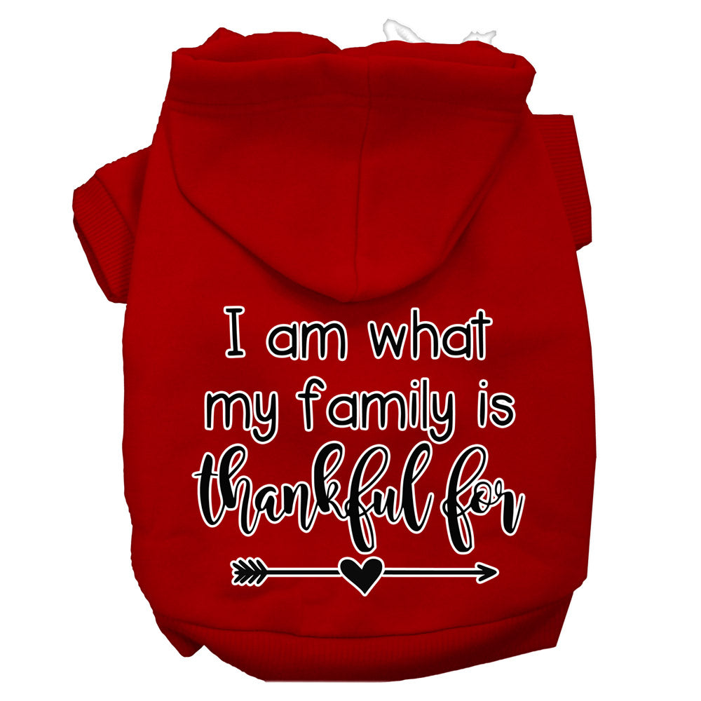 I Am What My Family Is Thankful For Screen Print Dog Hoodie Red Xl