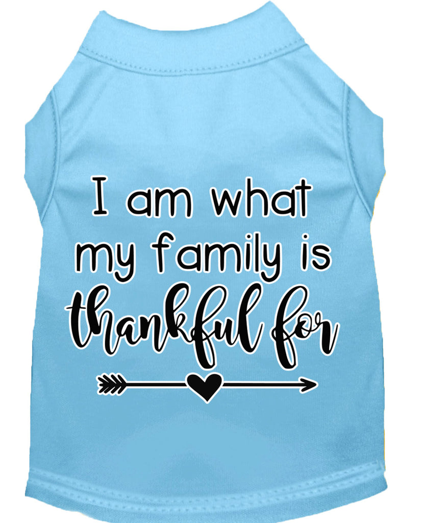 I Am What My Family Is Thankful For Screen Print Dog Shirt Baby Blue Sm