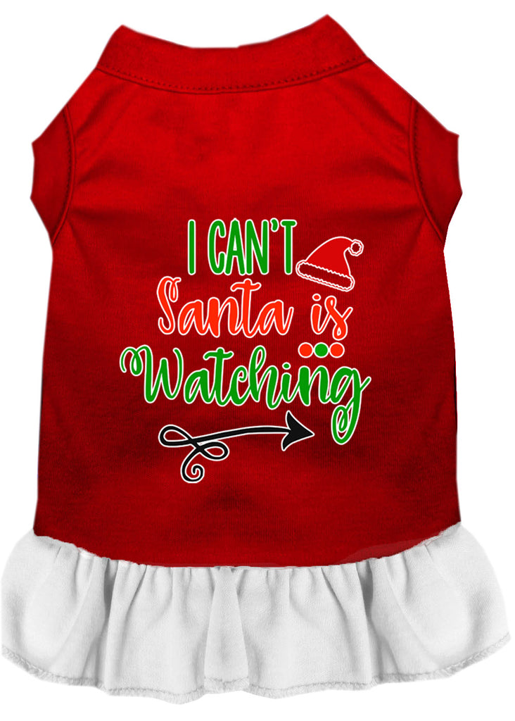 I Can't, Santa Is Watching Screen Print Dog Dress Red With White Lg