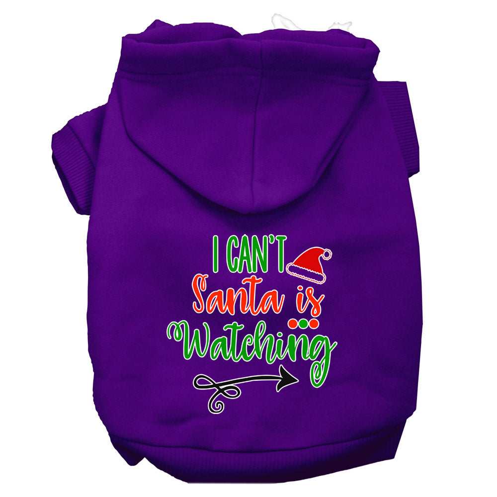 I Can't, Santa Is Watching Screen Print Dog Hoodie Purple L