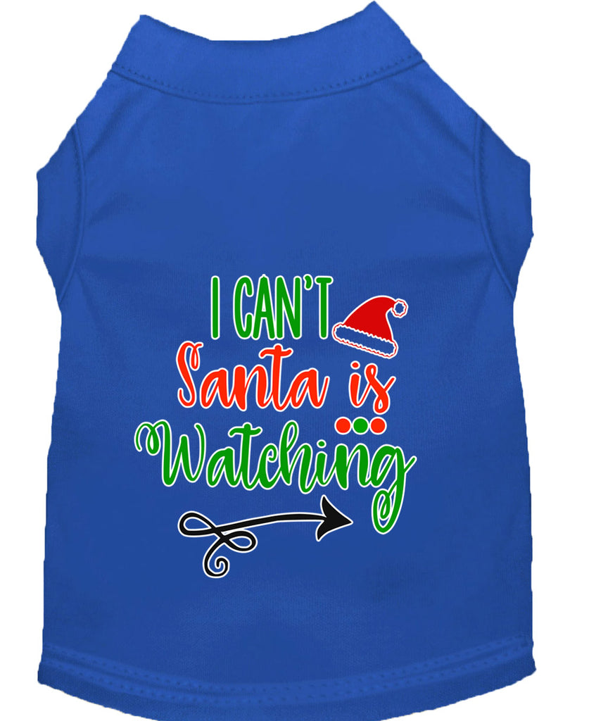 I Can't, Santa Is Watching Screen Print Dog Shirt Blue Xxl