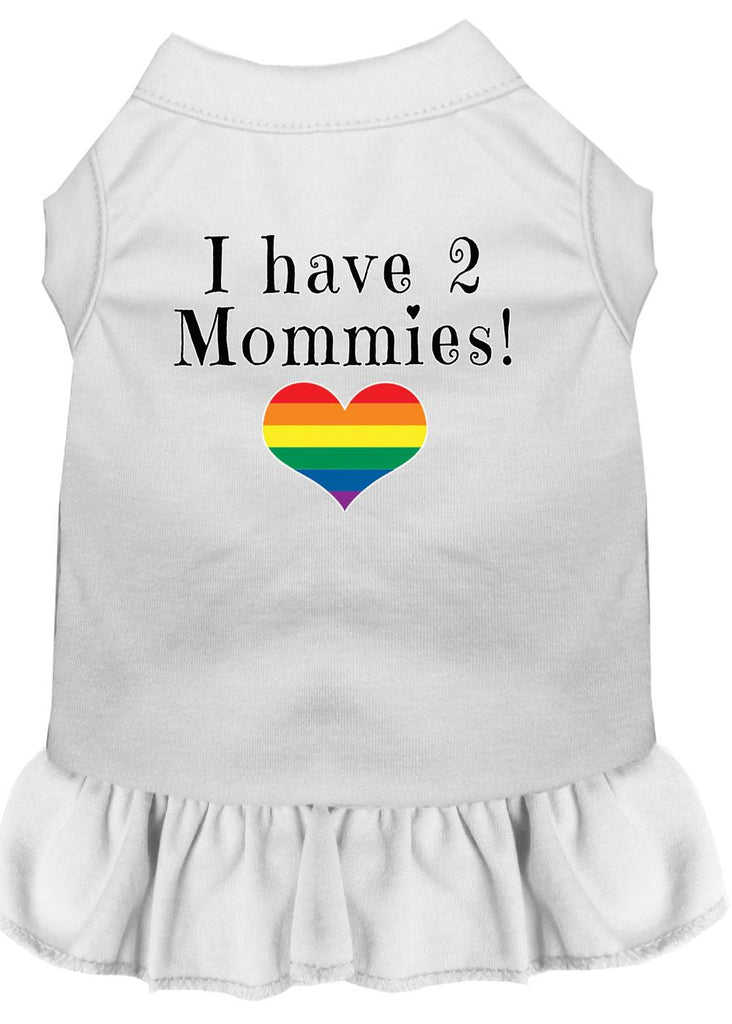 I Have 2 Mommies Screen Print Dog Dress White Med