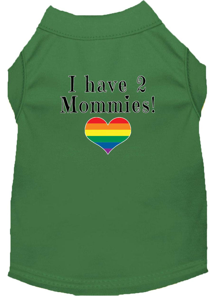 I Have 2 Mommies Screen Print Dog Shirt Green Xxxl