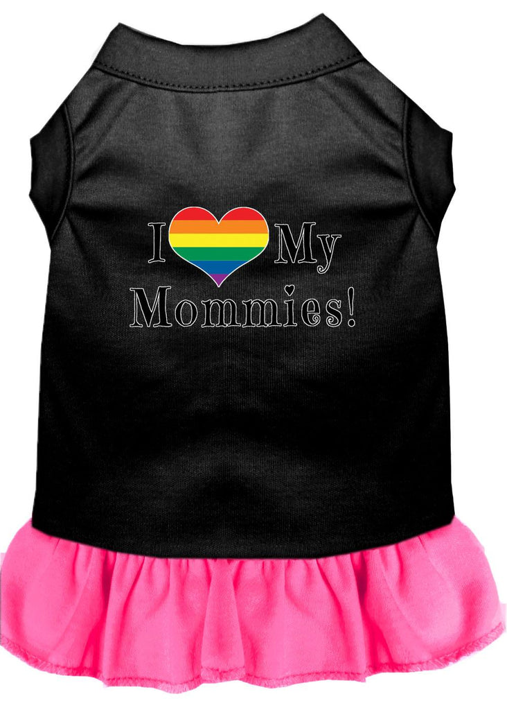 I Heart My Mommies Screen Print Dog Dress Black With Bright Pink Med