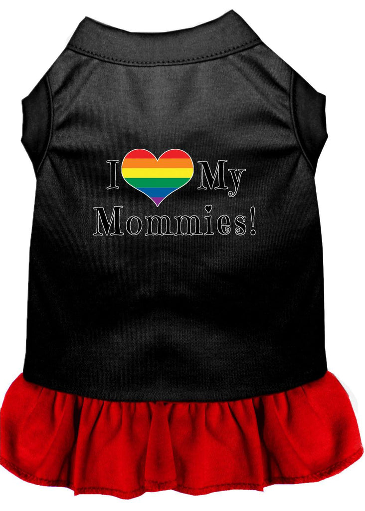 I Heart My Mommies Screen Print Dog Dress Black With Red Med