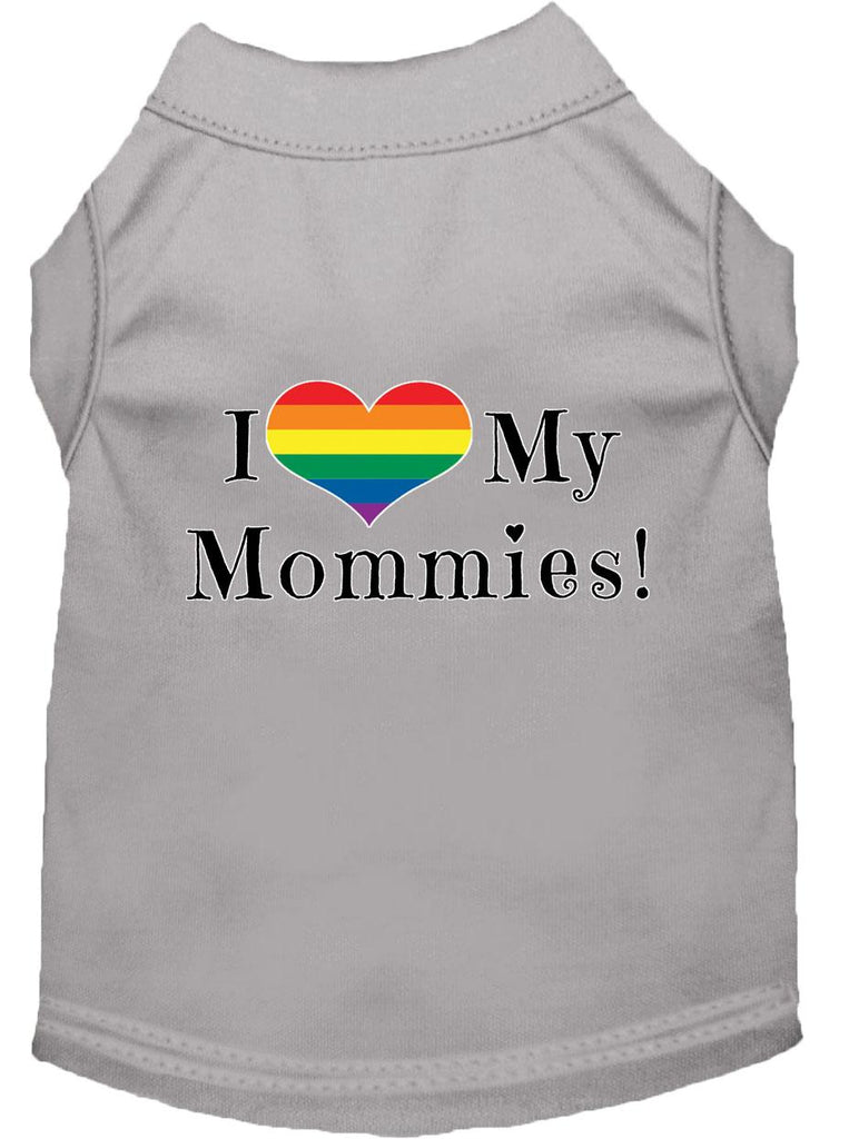 I Heart My Mommies Screen Print Dog Shirt Grey Med