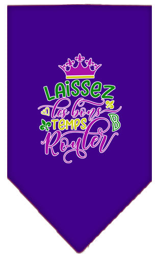 Laissez Les Bons Temps Rouler Screen Print Mardi Gras Bandana Purple Large