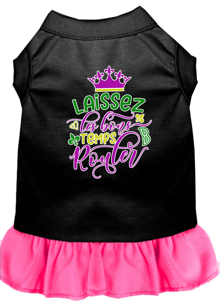 Laissez Les Bons Temps Rouler Screen Print Mardi Gras Dog Dress Black With Bright Pink Lg