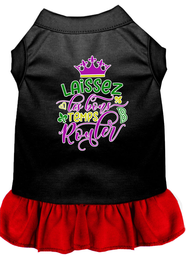 Laissez Les Bons Temps Rouler Screen Print Mardi Gras Dog Dress Black With Red Xxxl