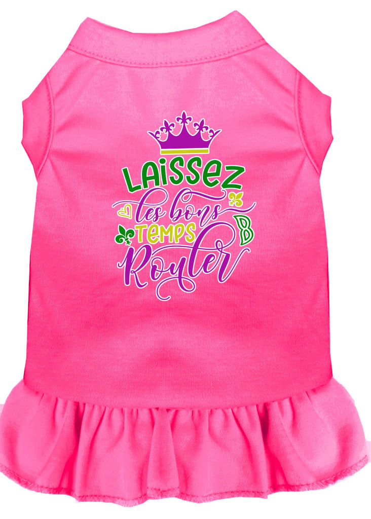 Laissez Les Bons Temps Rouler Screen Print Mardi Gras Dog Dress Bright Pink Xxl